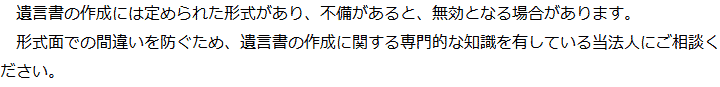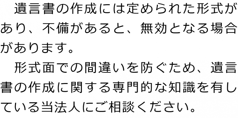 しかし、気を付けなければいけないのは、遺言の作成にはルールがあり、不備があると、無効となってしまうおそれがあるという点です。