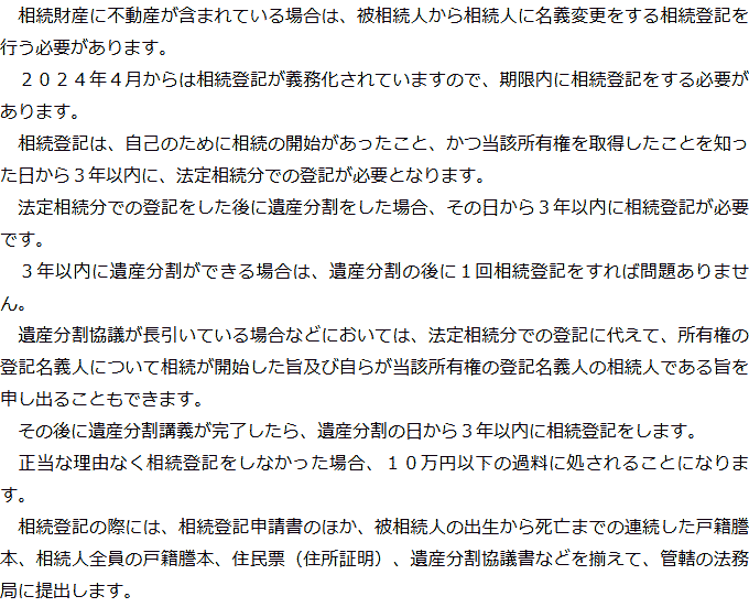 Q&A(目次)Q&Aトップ相続手続きの必要事項に関するQ&A 受付時間 平日 9時~21時、土日祝 9時~18時 夜間・土日祝の相談も対応します (要予約) 所在地 〒359-1123 埼玉県所沢市日吉町9-23TRN所沢4F 0120-2403-39 お問合せ・アクセス・地図