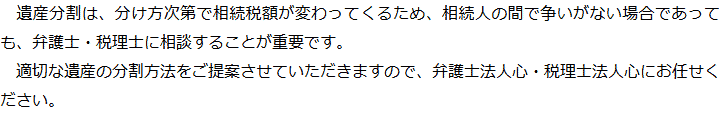 トップ業務内容遺産分割 階層構造▼ 業務内容(目次) 遺産分割 業務内容(目次)業務内容トップ行政書士法人心の業務内容遺言遺産整理相続人調査相続財産調査遺産分割協議書の作成預金・貯金の解約・名義変更証券口座の解約・名義変更自動車の名義変更心グループのその他の業務内容家族信託・民事信託節税対策事業承継遺言の検認相続放棄限定承認遺産分割遺留分侵害額請求相続登記相続税申告相続税調査 受付時間 平日 9時~21時、土日祝 9時~18時 夜間・土日祝の相談も対応します (要予約) 所在地 〒359-1123 埼玉県所沢市日吉町9-23TRN所沢4F 0120-2403-39 お問合せ・アクセス・地図